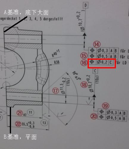 在三坐標(biāo)建立坐標(biāo)系的時(shí)候,以A基準(zhǔn)平面確定Z軸,B基準(zhǔn)平面確定Y軸,C基準(zhǔn)圓柱確定坐標(biāo)原點(diǎn).這樣再評(píng)價(jià)D圓柱相對(duì)C的位置度0.2,這是正確的,因?yàn)檫@樣評(píng)價(jià)時(shí)到時(shí)候給出兩孔Y向理論距離就行了,不需要再用C、D孔構(gòu)鍵線來(lái)確定Y軸.至于C、D孔位置度都是A和B基準(zhǔn)下進(jìn)行評(píng)價(jià)的,所以應(yīng)當(dāng)以B基準(zhǔn)做軸向.